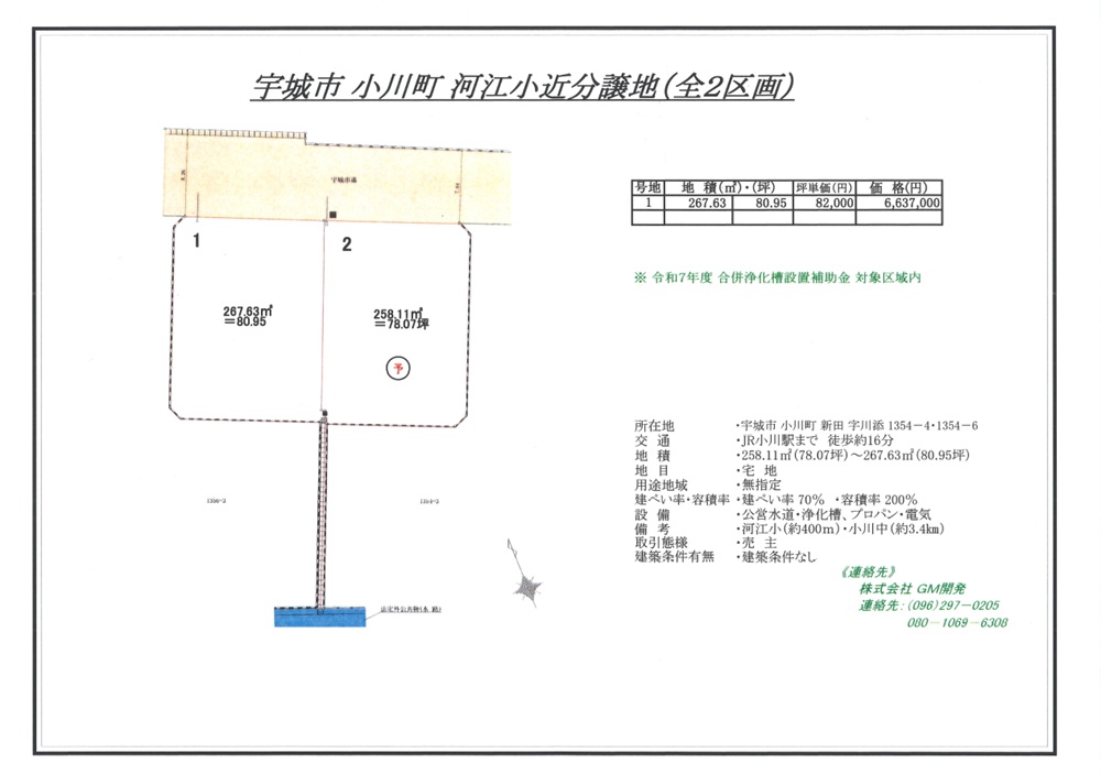 宇城市 小川町 河江小近分譲地(全2区画)